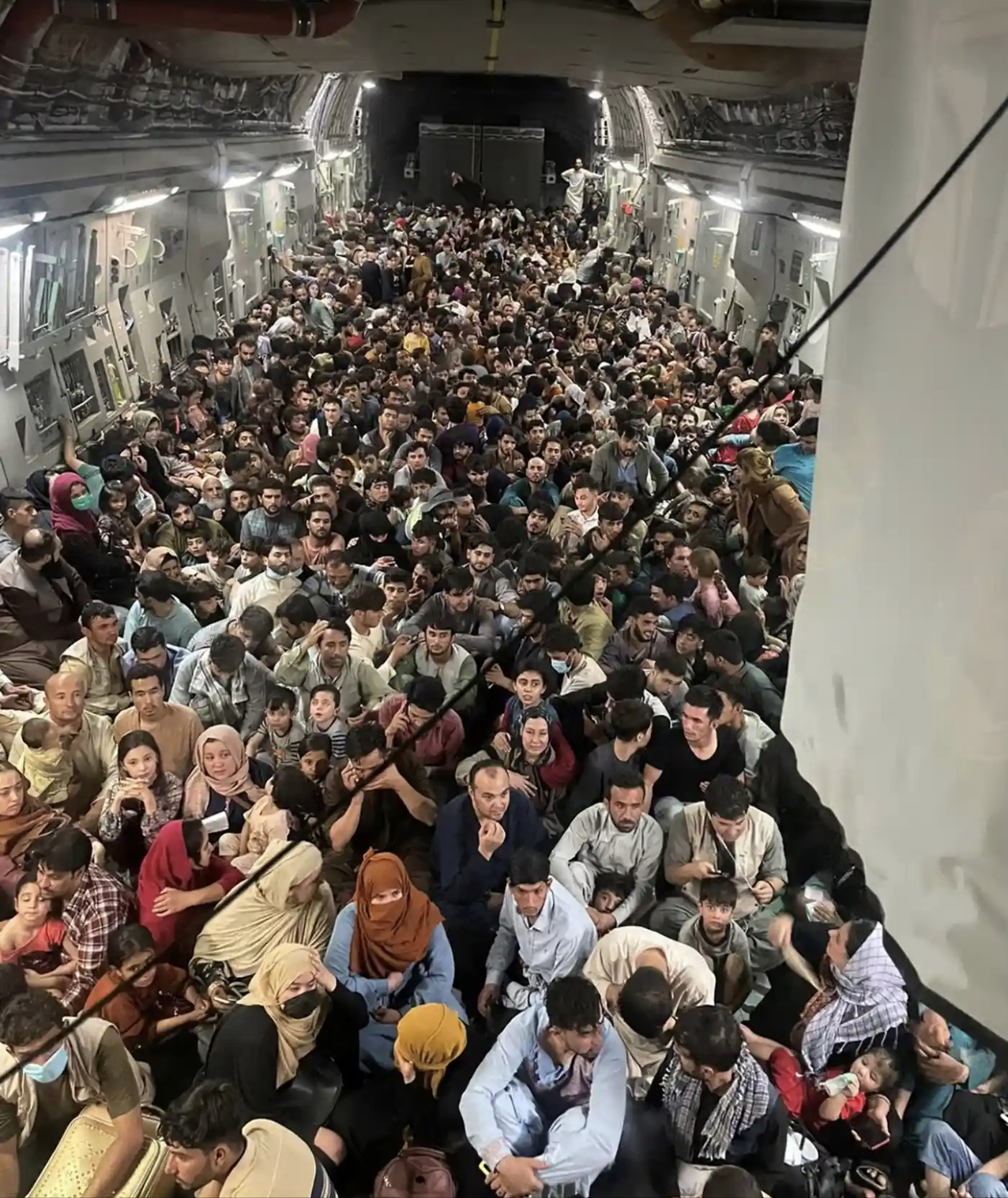 Fotografia dimineții – Sute de afgani s-au înghesuit într-un avion american militar care a zburat de la Kabul în Qatar. Courtesy Of Defense One/Reuters: