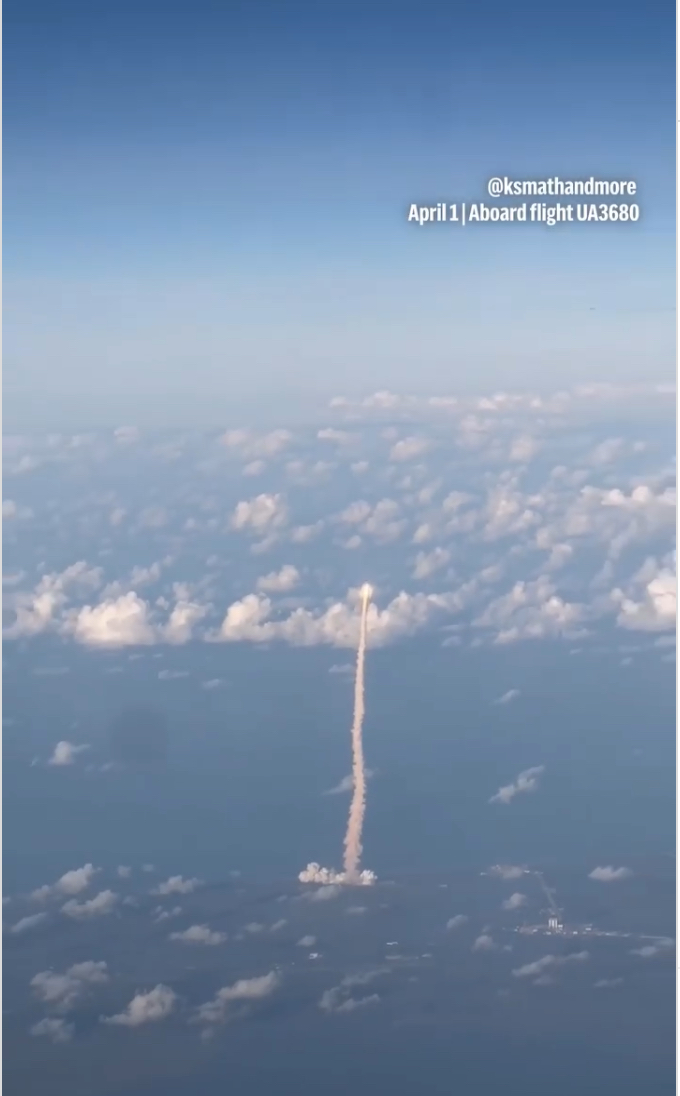Fotografia dimineții – Un pasager al unui avion comercial a filmat lansarea navetei spațiale Artemis II: