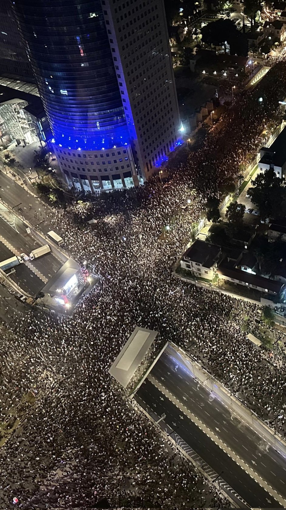 Fotografia dimineții este din Tel Aviv unde zeci de mii de persoane au cerut în strada demisia premierului Netanyahu și alegeri anticipate: