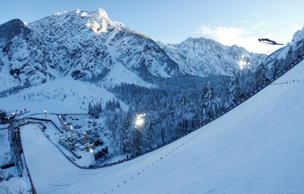 Fotografia săptămânii: Un săritor cu schiurile la Planica, în Slovenia. Sursă: Reuters / Srdjan Zivulovic: