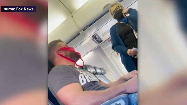 Fotografia dimineții – Un american s-a suit în avion purtând o pereche de chiloți roșii de damă în loc de mască: