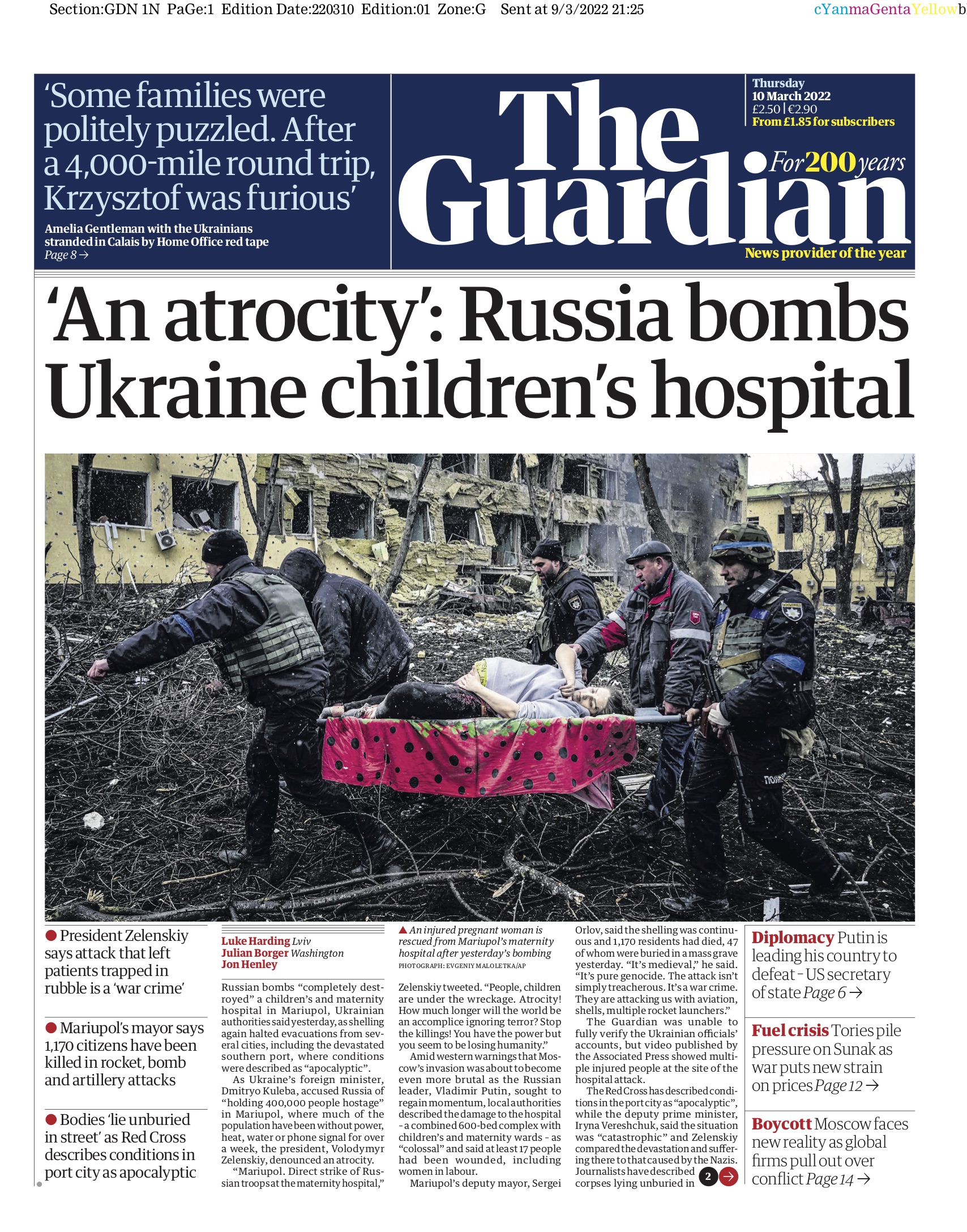 Fotografia dimineții – Prima pagina a The Guardian, ediția de azi:
