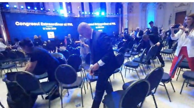 Fotografia dimineții – Ilie Bolojan şi colegii de partid au făcut curat în Sala Unirii din Palatul Parlamentului, unde sâmbătă a avut loc Congresul PNL:
