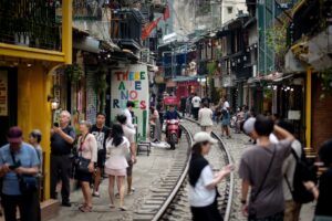 Fotografia dimineții – Autoritățile din Hanoi, Vietnam, intenționează să oprească serviciile feroviare care trec prin strada cu cafenele, unul dintre cele mai populare locuri ale orașului.