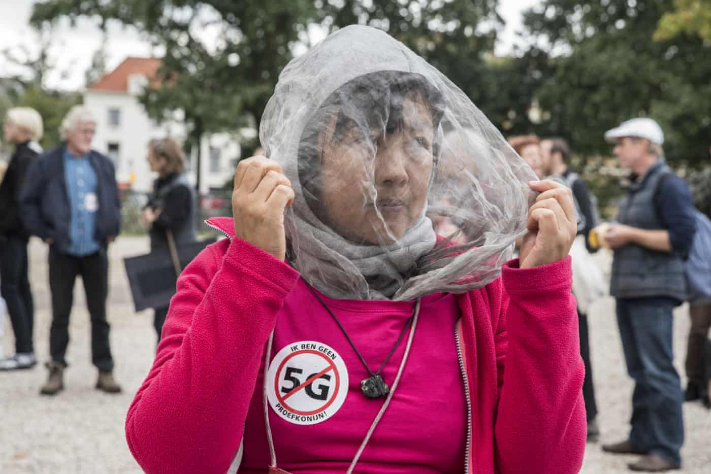 Fotografia dimineții – Proteste la Haga, în Olanda, împotriva tehnologiei 5G. Pe sticker scrie “ Nu sunt un porcușor de Guineea”. Michel Porro/Getty Images: