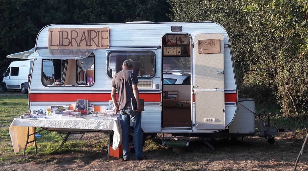 Fotografia ediției: O rulotă intitulată „La Limou’Zine” a devenit o bibliotecă itinerantă, care se plimbă prin Franța și s-a instalat în ultimele zile în localitatea Creuse. Sursa: ActuaLitte.