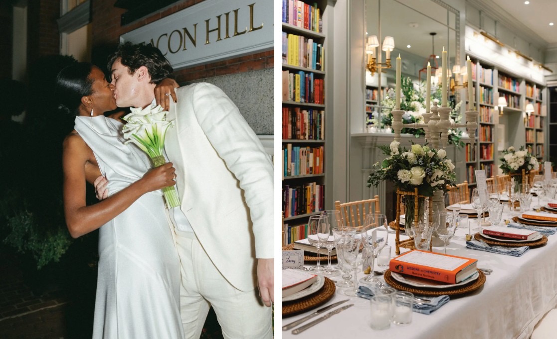 Fotografia săptămânii: Din ce în ce mai multe cupluri integrează librăriile în petrecerile lor de logodnă sau de nuntă. În imagine, Morgan Brewton-Johnson și Sam Hall, care s-au căsătorit în octombrie la Librăria Beacon Hill Books & Cafe din Boston, iar fiecare invitat al lor a primit în dar o carte. Sursa: New York Times.