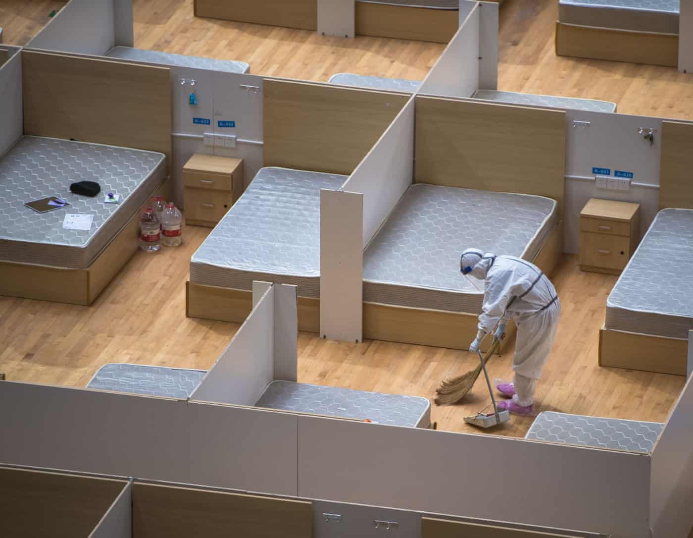 Fotografia dimineții – Un angajat face curățenie într-un spital din Wuhan care va fi închis, după ce ultimul pacient cu coronavirus a fost externat. Xinhua/Rex/Shutterstock: