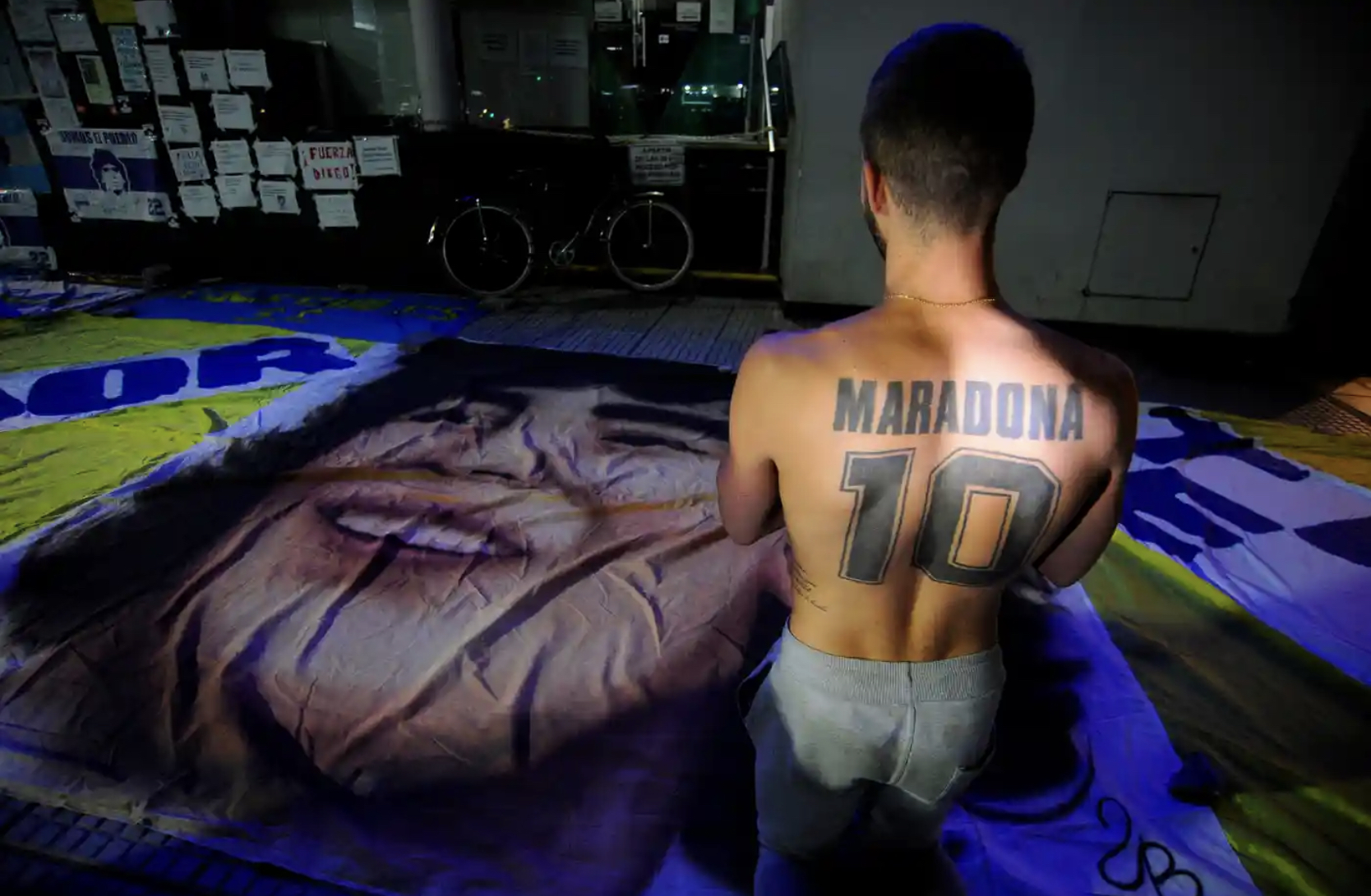 Fotografia dimineții – Un fan al lui Diego Maradona înghenunchează în fața clinicii unde fostul fotbalist a fost operat pe creier. Javier Gonzalez Toledo/AFP/Getty Images: