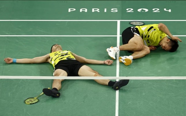Fotografia dimineții – Echipa masculină de badminton a Taiwanului după ce a învins China și a câștigat aurul olimpic la Paris. AFP: