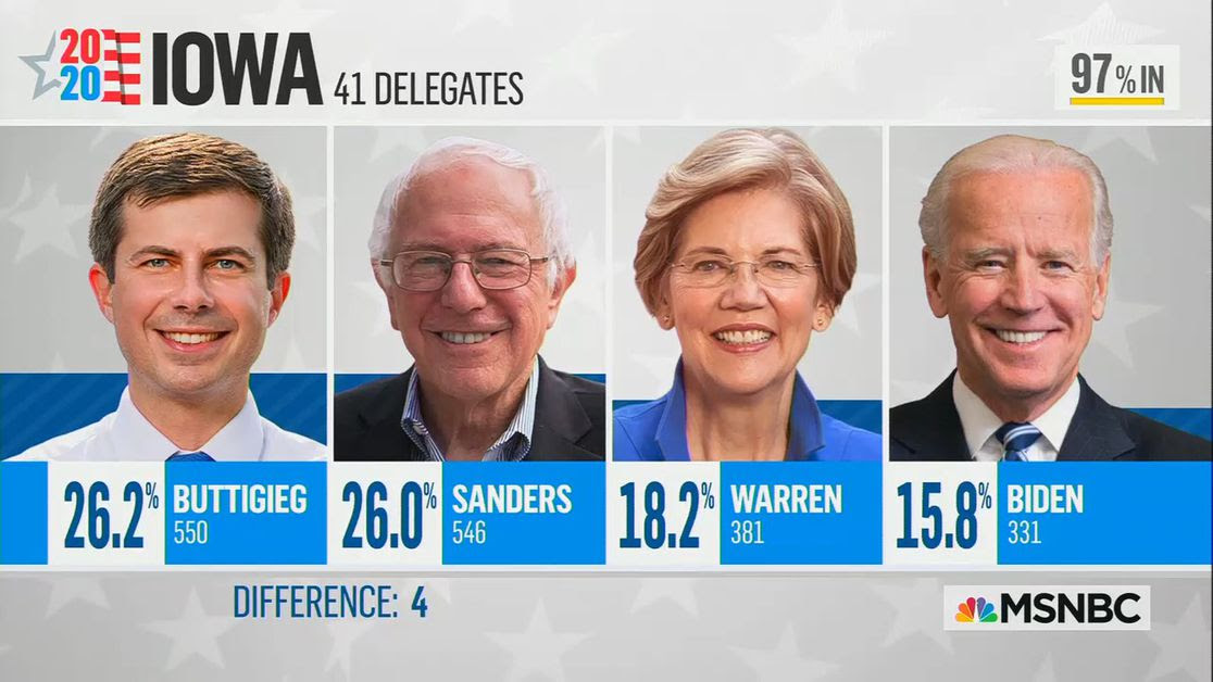 Fotografia serii – Rezultatele votului din Iowa după numărarea a 97% din voturi: