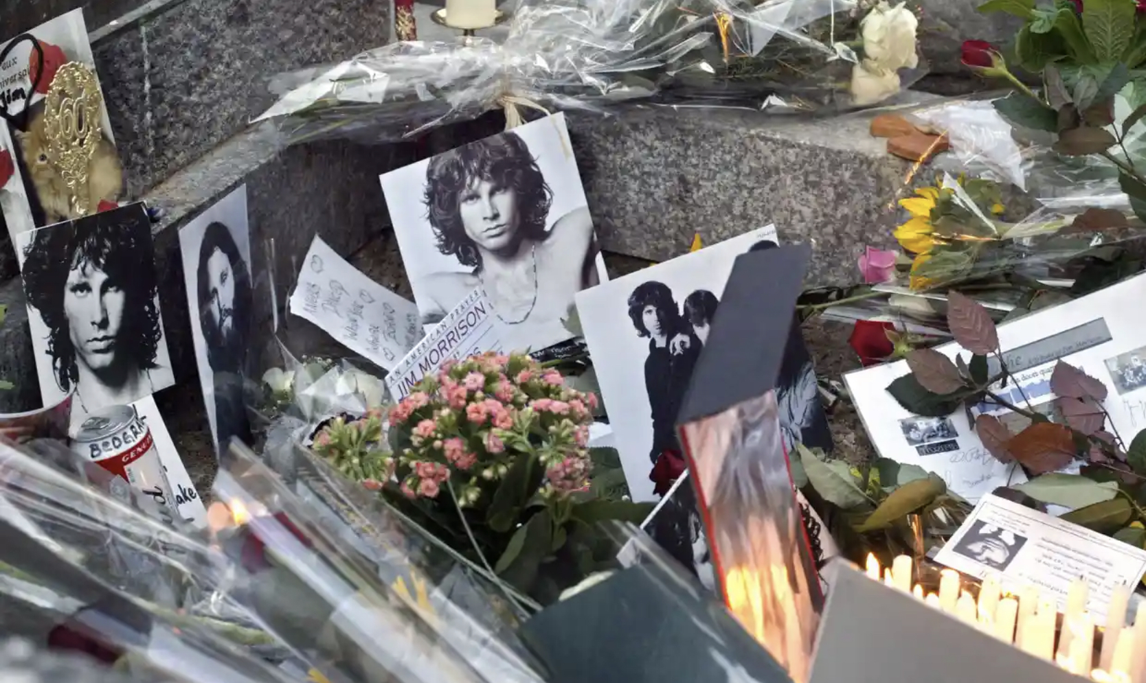 Fotografia dimineții – Mormântul lui Jim Morrison, din cimitirul Père Lachaise, Paris, ieri, când s-au împlinit 50 de ani de la moartea solistului The Doors. Joel Robine/AFP/Getty Images: