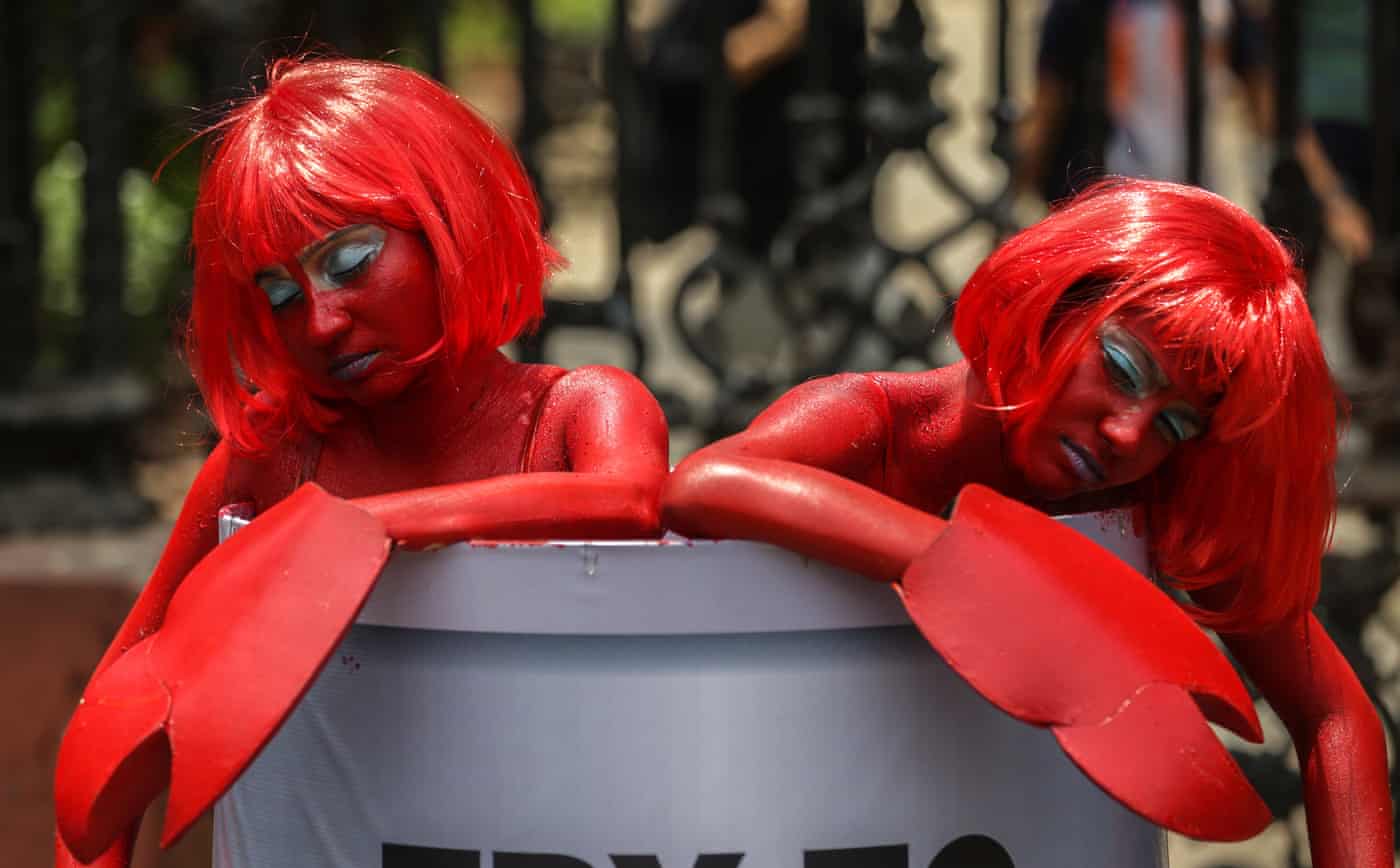 Fotografia serii – Activiști Peta îmbracați în homari în timpul unei campanii care încurajează renunțarea la consumul fructelor de mare pentru a încerca mâncarea vegană. Mumbai, India. Divyakant Solanki/EPA: