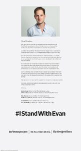 Fotografia dimineții – Cele mai importante ziare americane, New York Times, Washington Post și Wall Street Journal, au publicat în comun o scrisoare manifest pentru eliberarea jurnalistului Evan Gershkovich, reținut de autoritățile ruse: