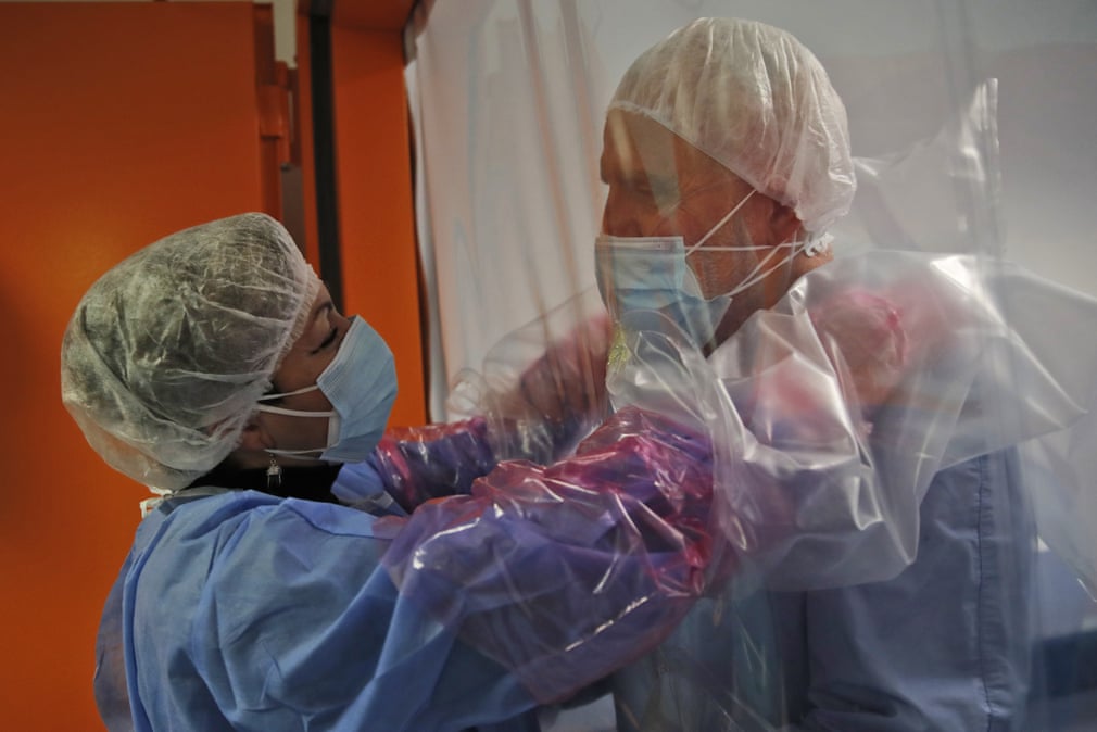 Ela Gubbiotti își îmbrățișează partenerul, Giancarlo Vannimartini, un anestezist care a stat într-un spital de lângă Roma, timp de 10 zile. Alessandra Tarantino/AP: