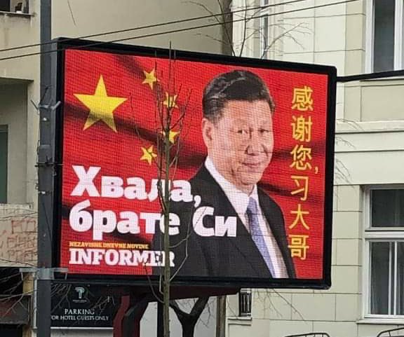 Fotografia dimineții – La Belgrad au apărut bannere cu chipul președintelui chinez pe care scrie “Multumim, frate Xi”.