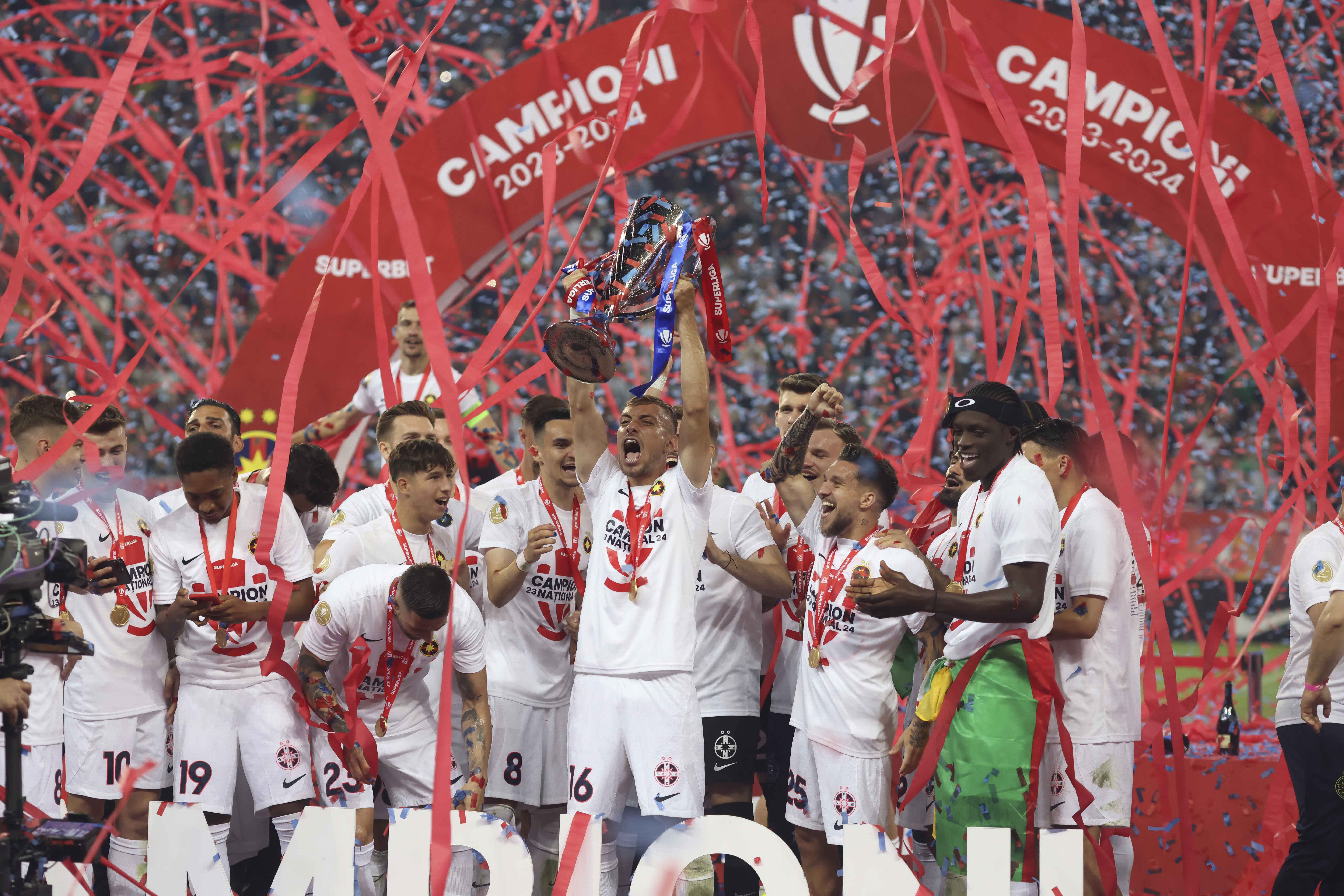 Fotografia dimineții – FCSB a primit aseară, pe Arena Națională, trofeul și medaliile pentru câștigarea Superligii. Inquam Photos / George Calin: