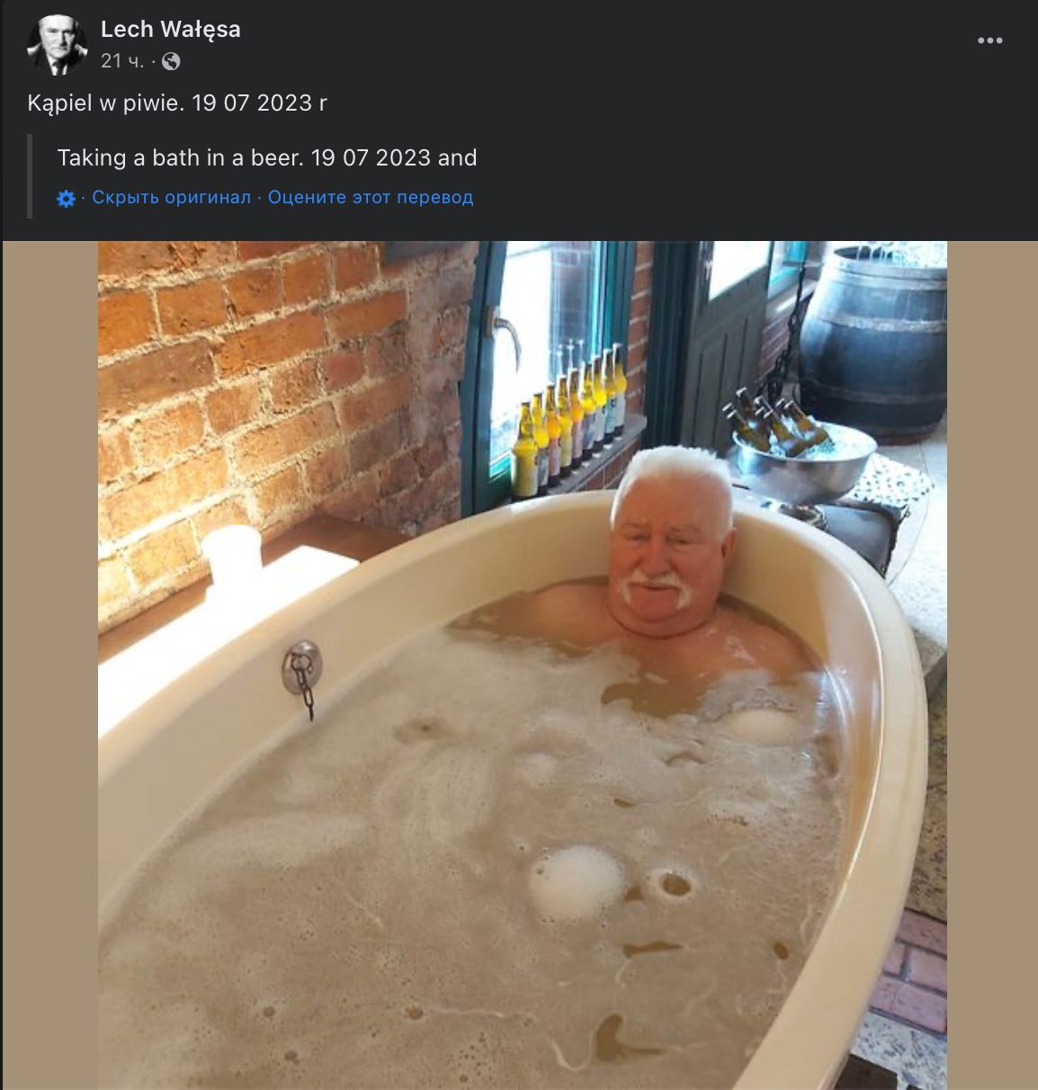 Fotografia dimineții – Lech Wałęsa, fostul președintele polonez, a postat o fotografie cu el într-o cadă plină cu bere.