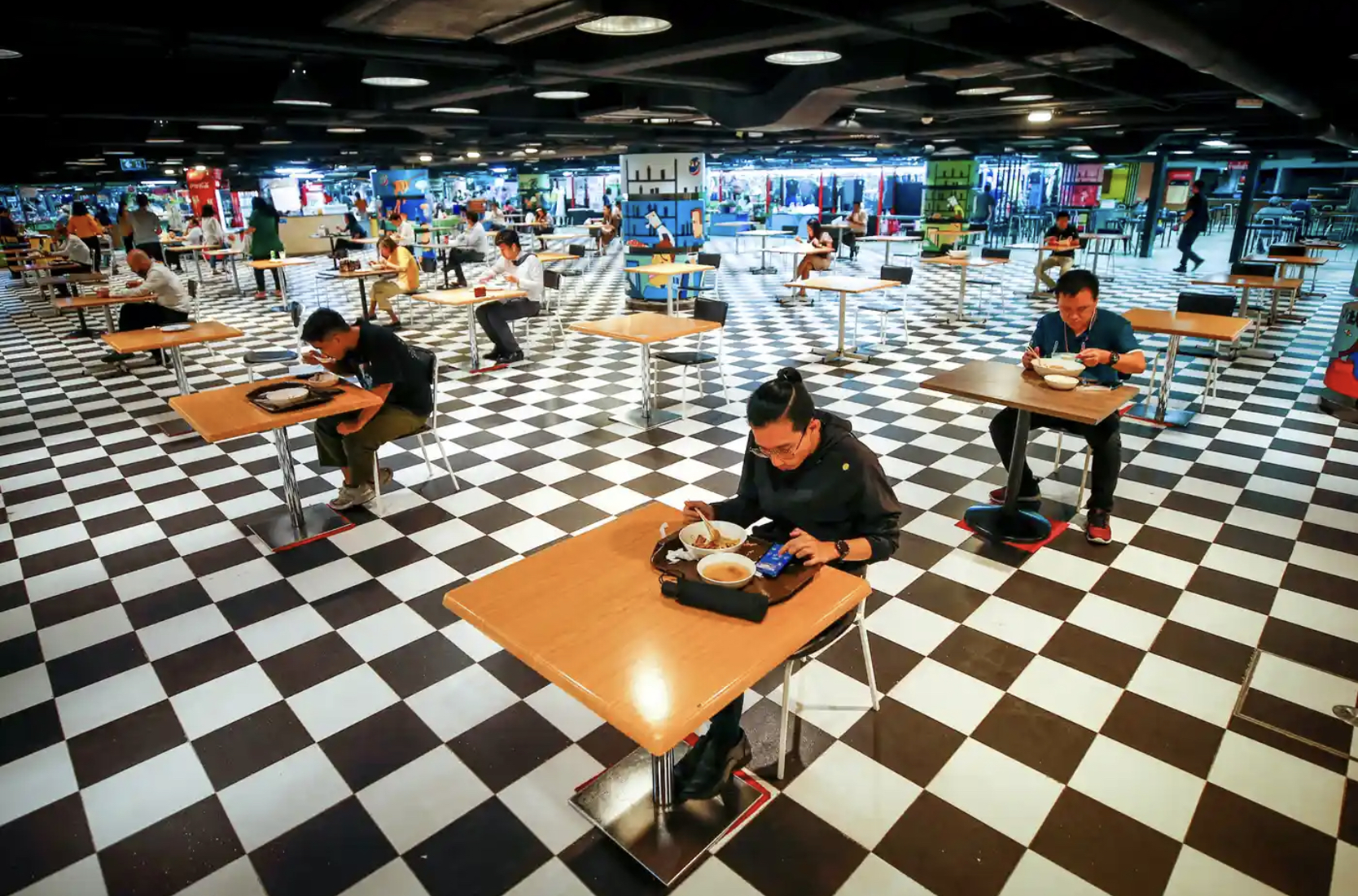 Fotografia dimineții – Distanțarea socială asigurată la restaurantul unei clădiri de birouri din Bangkok, Thailanda. Diego Azubel/EPA: