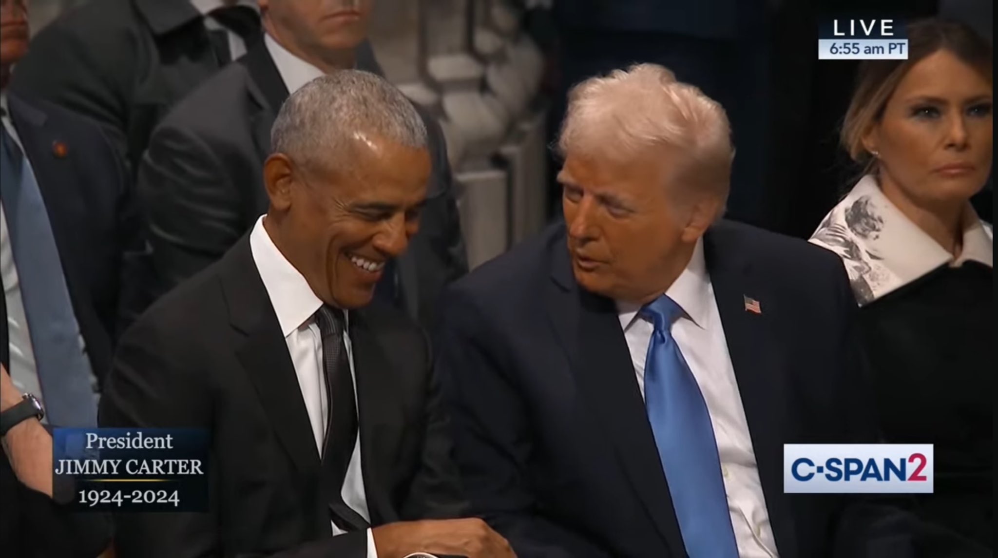 Fotografia dimineții- Toţi cei cinci preşedinţi în viaţă ai SUA – Joe Biden, Barack Obama, Donald Trump, George W Bush şi Bill Clinton – au fost văzuţi împreună la funeraliile lui Jimmy Carter. În imagine apar Obama și Trump, întreținându-se amical:
