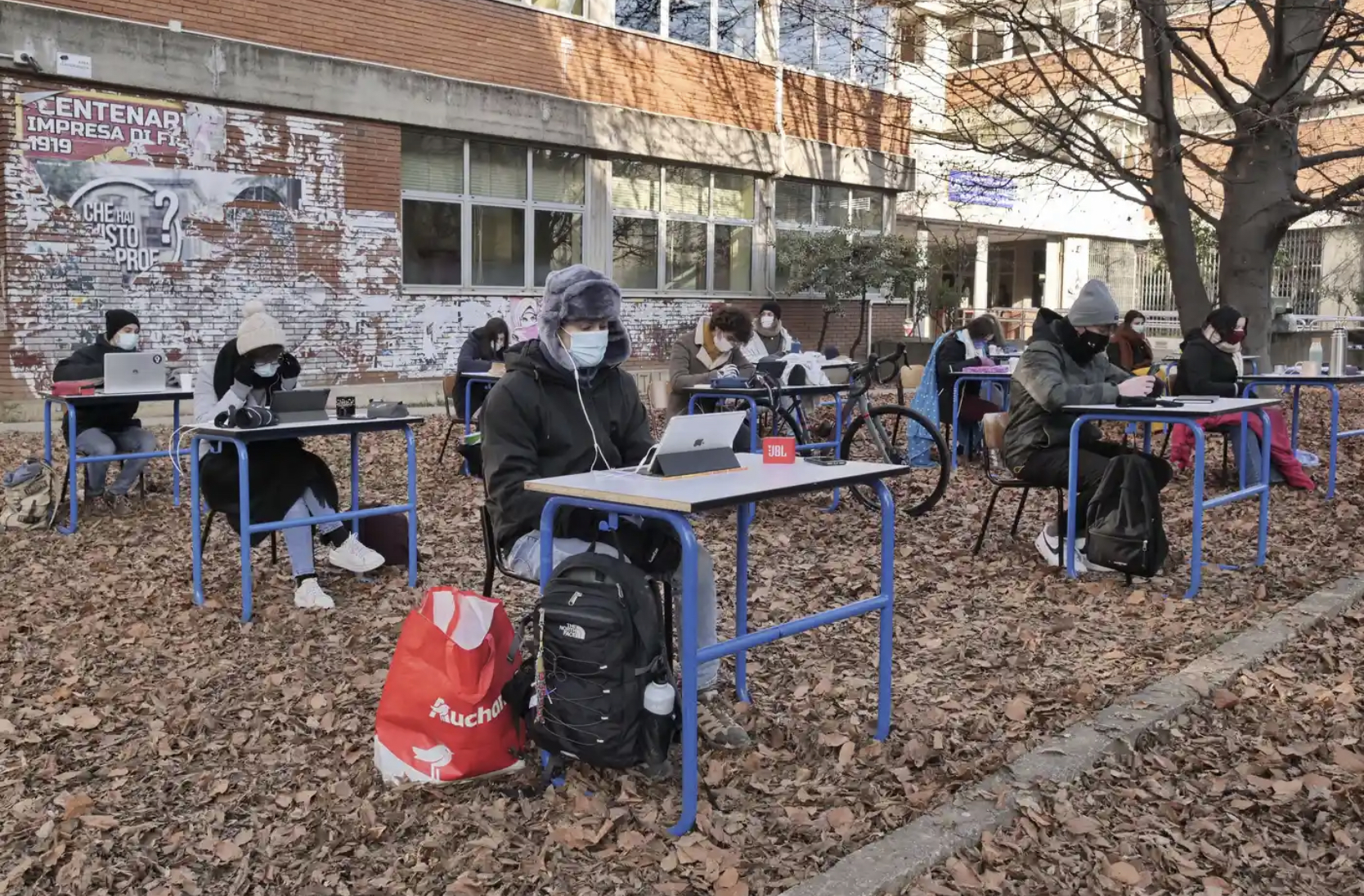 Fotografia dimineții – Protest al elevilor din Bergamo care le-au cerut autorităților să fie permisă reluarea cursurilor în clase. Luca Ponti/Pacific Press/REX/Shutterstock: