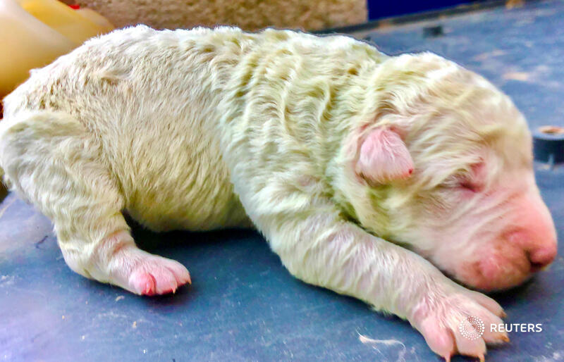 Fotografia dimineții – Unul dintre cei 8 câini născuți în curtea unui fermier italian are nuanțe de verde în blana sa. Cățelușul a fost numit Pistachio (Fistic) de fermier. Reuters: