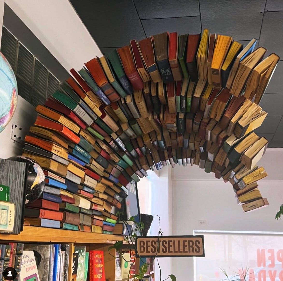 Fotografia săptămânii: Instalația de cărți din librăria Big Story Books din localitatea Bend, Oregon. Sursa: Instagram BookRiot.