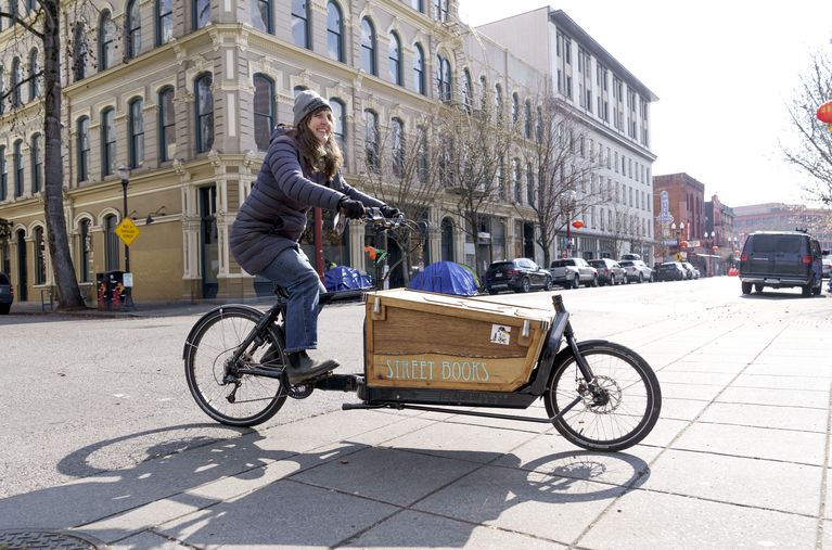 Fotografia ediției: Street Books, o bibliotecă mobilă non-profit din Portland, Oregon, oferă cărți oamenilor fără adăpost din oraș. Sursă fotografie: Oregon Public Broadcasting.