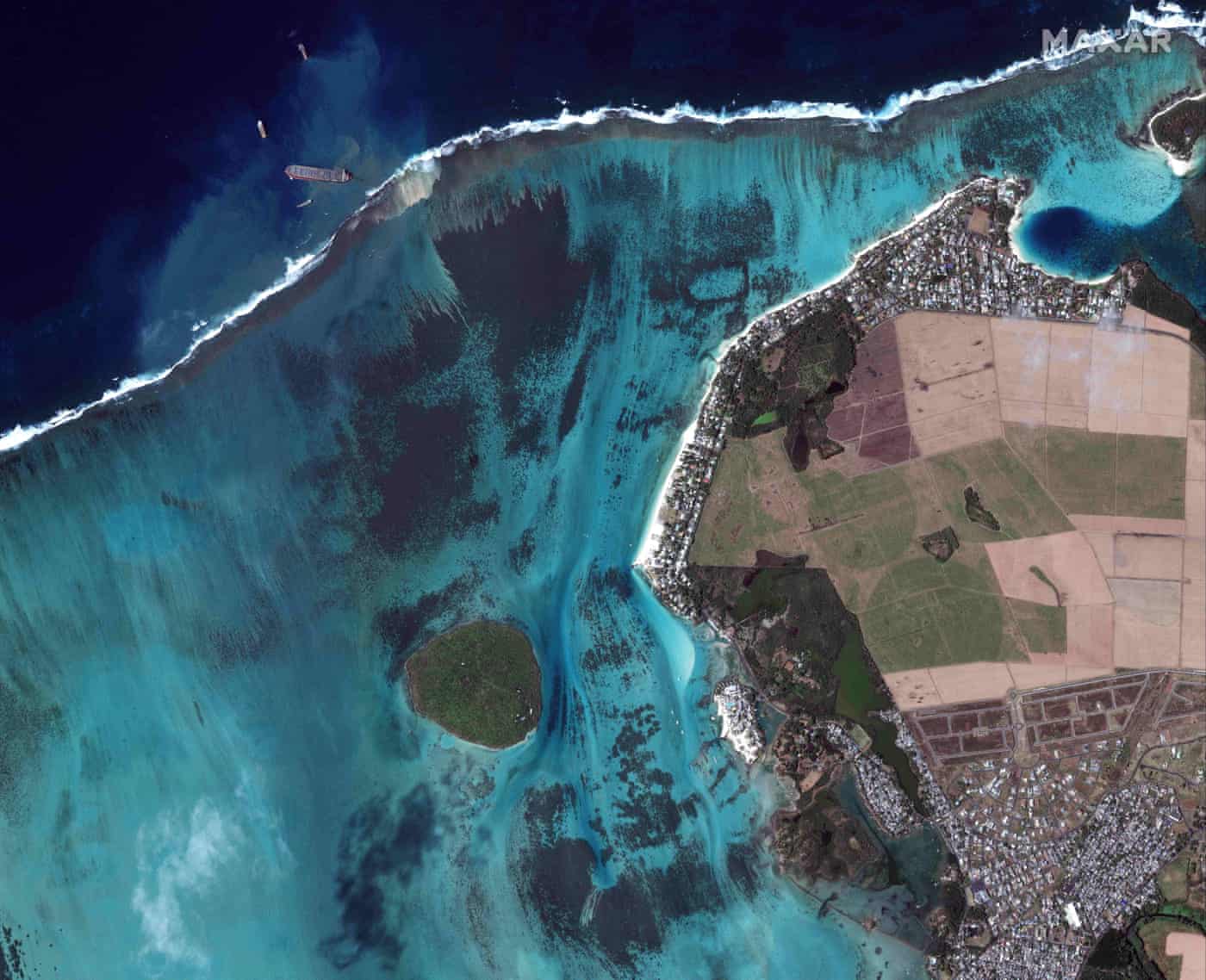 Fotografia dimineții prezinta dezastrul ecologic de pe coasta din Mauritius după ce dintr-un petrolier japonez au început să se scurgă aproape 1000 tone de petrol:
