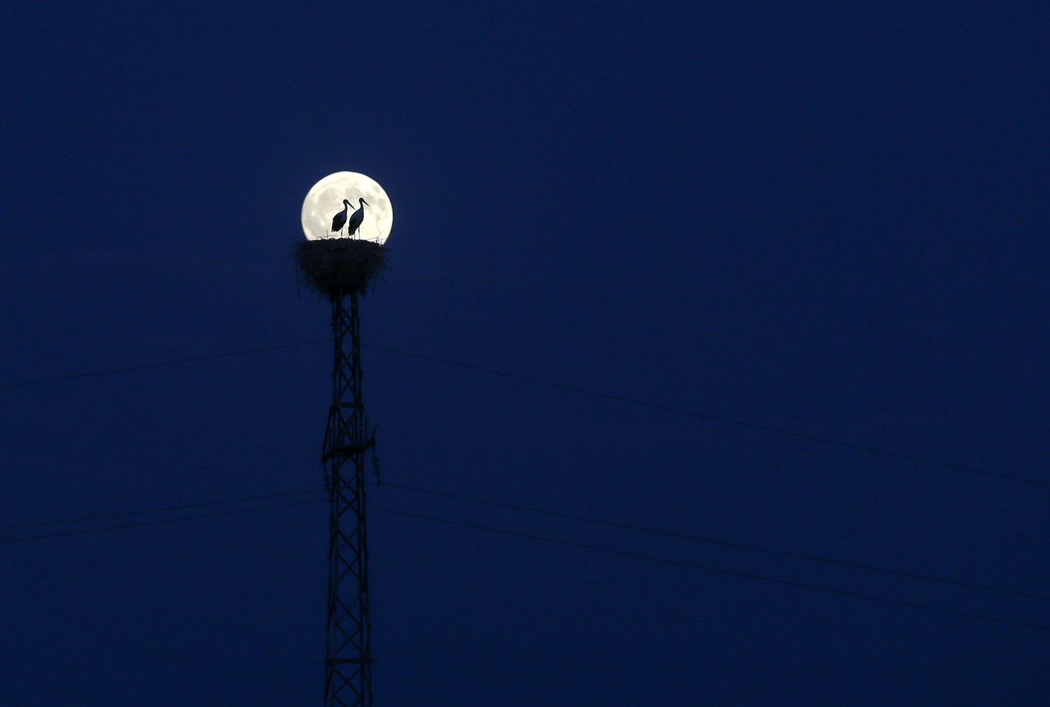 Fotografia dimineții – Două berze și o Lună plină. Ozkan Bilgin / Anadolu Agency / Getty :