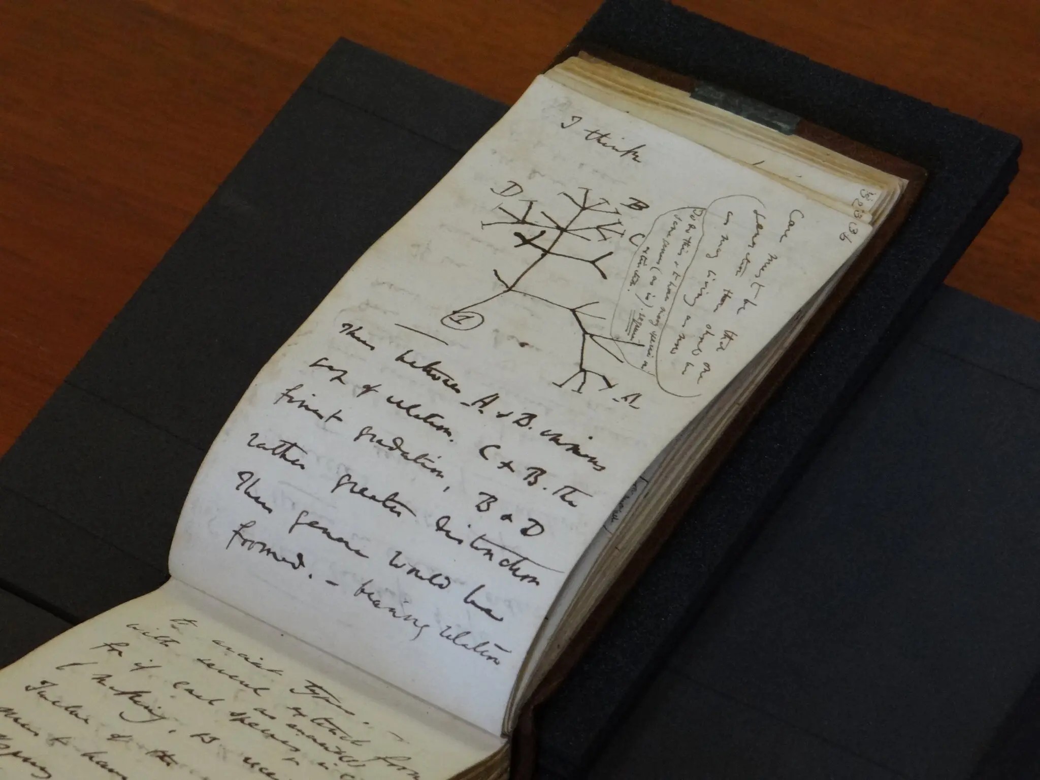 Fotografia ediției: Două dintre caietele naturalistului Charles Darwin au fost returnate la biblioteca Universității Cambridge, împreună cu un bilețel pe care scria: „Paște Fericit!” Sursa: New York Times.