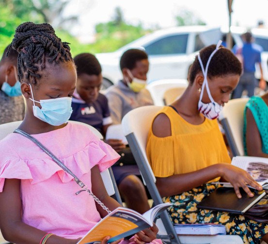 Fotografia ediției: În 2020, 867.567 de cărți donate de către edituri au fost trimise copiilor din toată lumea prin Book Aid International. În imagine, copiii din Ghana citesc cărți donate prin această organizație. Sursă: Rotary Club, Rainbow Trust Found.