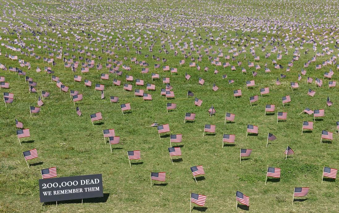 Fotografia dimineții – 200.000 de stegulețe au fost plasate într-un parc din SUA pentru comemorarea celor 200.000 de americani decedați din cauza Covid-19: