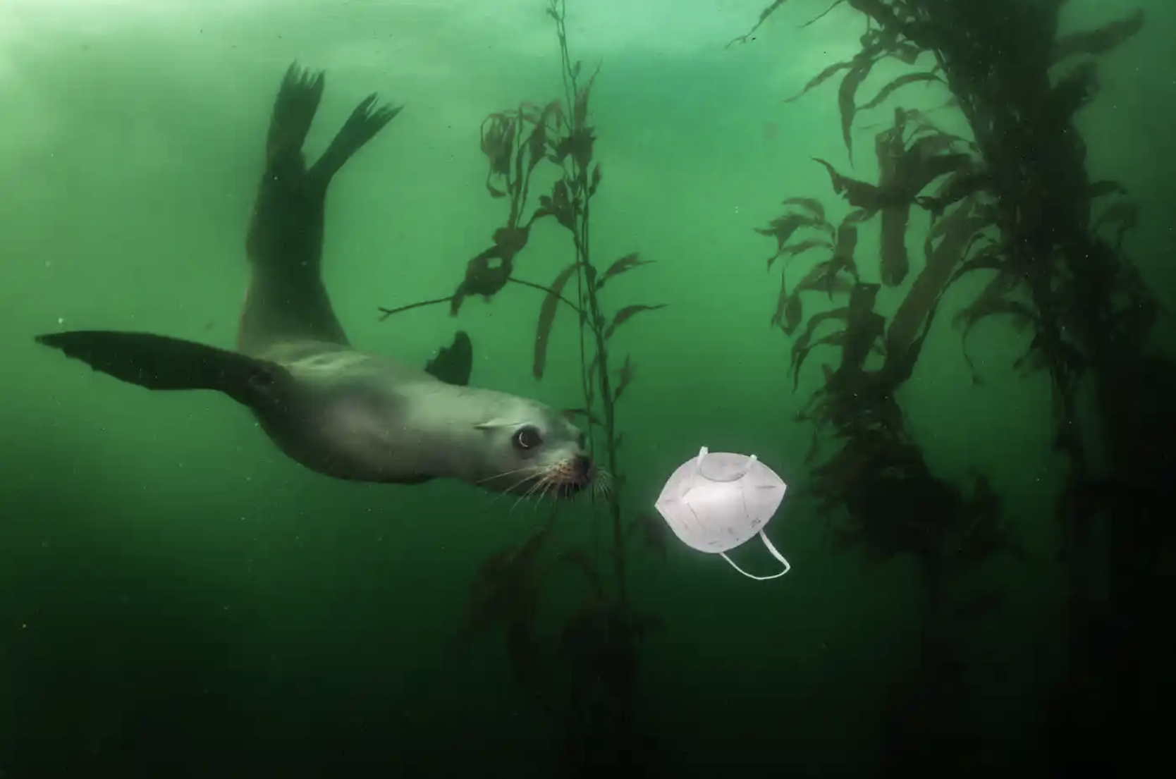 Fotografia dimineții este din California, unde un leu de mare se joacă, cu o mască. Ralph Pace/World Press Photo 2021:
