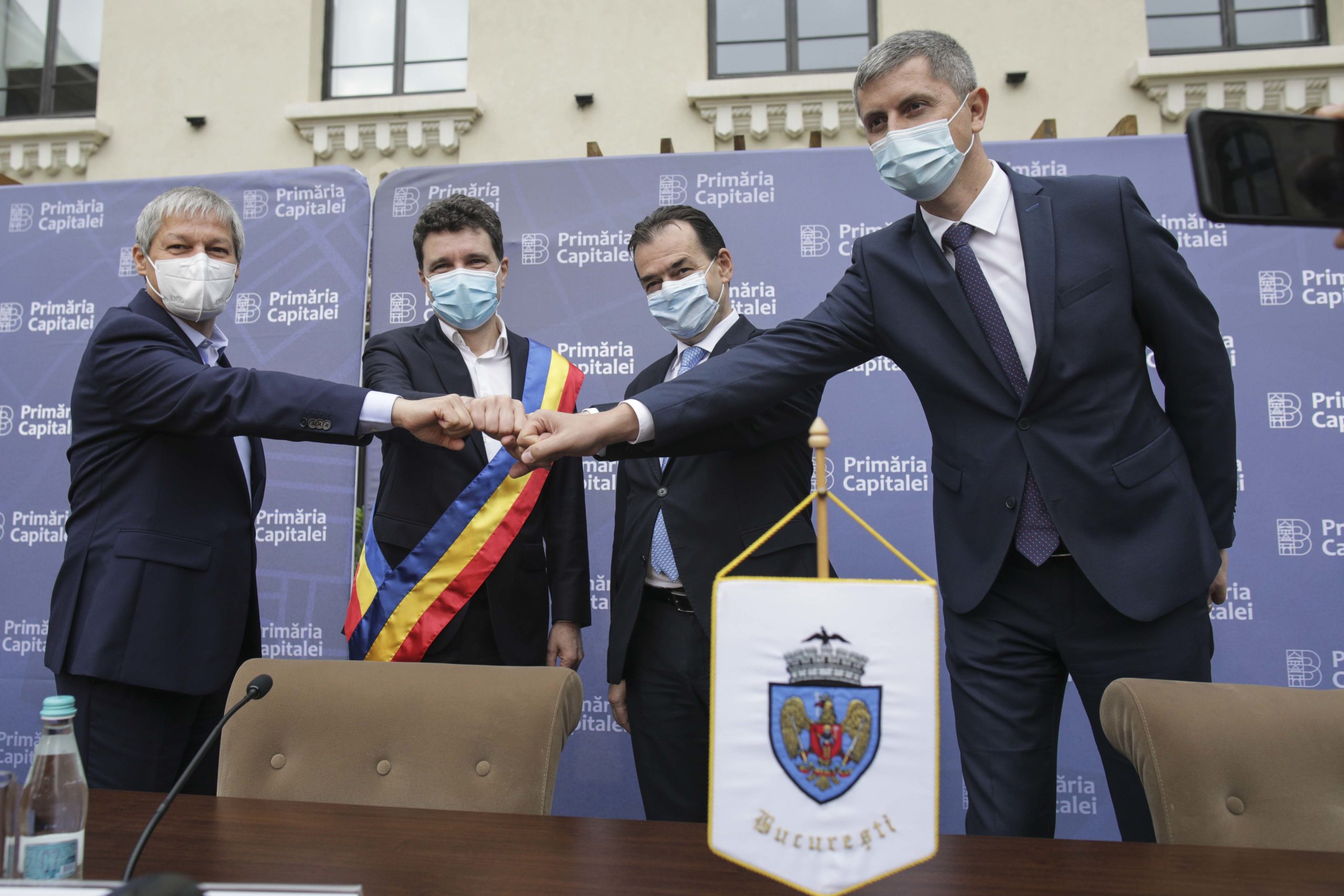 Fotografia serii – Ludovic Orban, Dacian Ciolos și Dan Barna la ceremonia de depunere a jurământului a noului primar general al Capitalei, Nicușor Dan. Octav Ganea, Inquam Photos: