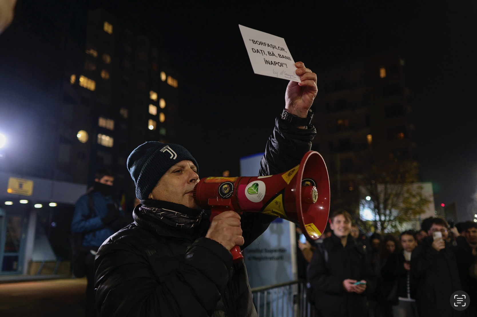 Fotografia dimineții – Protestatarul Marian Ceaușescu a fost prezent aseară, în fața sediului Consiliului Superior al Magistraturii, unde câteva sute de petsoane au cerut o justiție independentă. Inquam Photos / Alexandru Nechez: