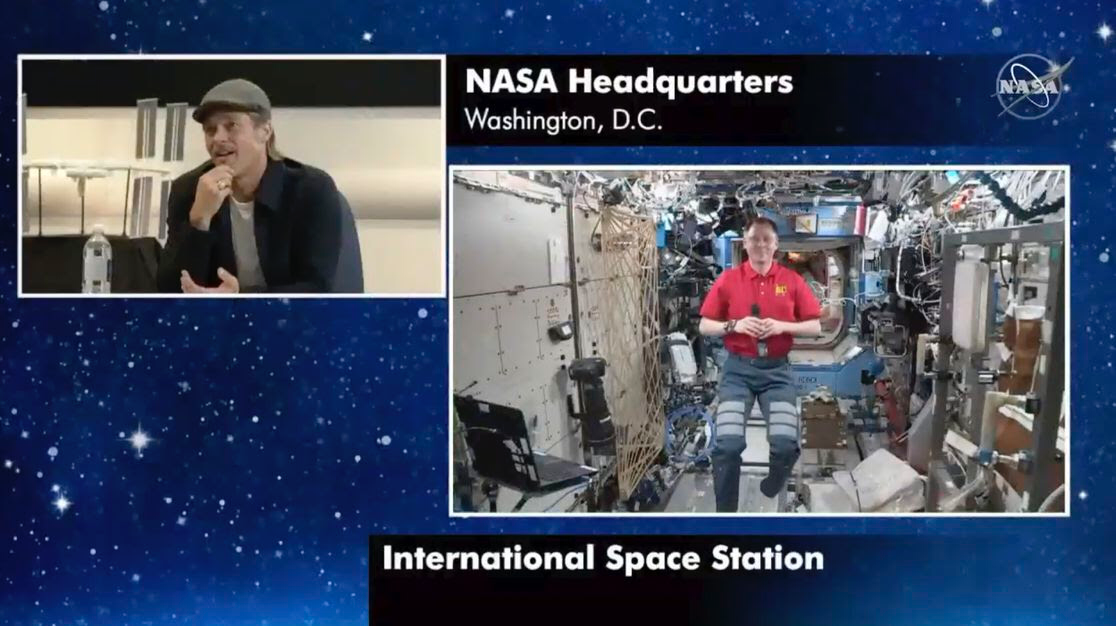 Fotografia dimineții – Brad Pitt, protagonistul filmului “Ad Astra”, vorbește de la centrul NASA cu astronautul Nick Hague, aflat la bordul Stației Spațiale Internaționale: