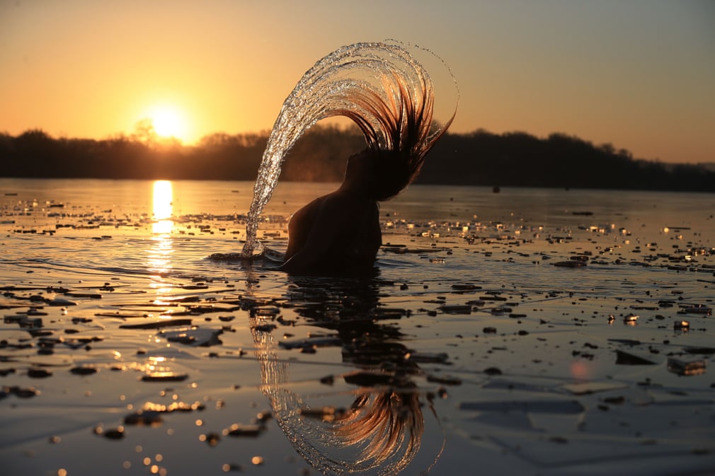 Fotografia dimineții – Un înotător/o înotătoare își scutură părul după ce s-a scufundat în apele înghețate ale lacului Lincolnshire, din Marea Britanie. Lindsey Parnaby/AFP/Getty Images: