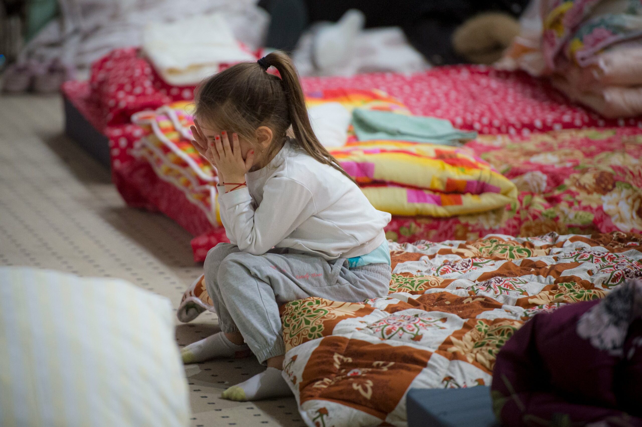 Fotografia dimineții – O fetiță din Ucraina, refugiată în România, își acoperă fața. AP Photo/Alexandru Dobre: