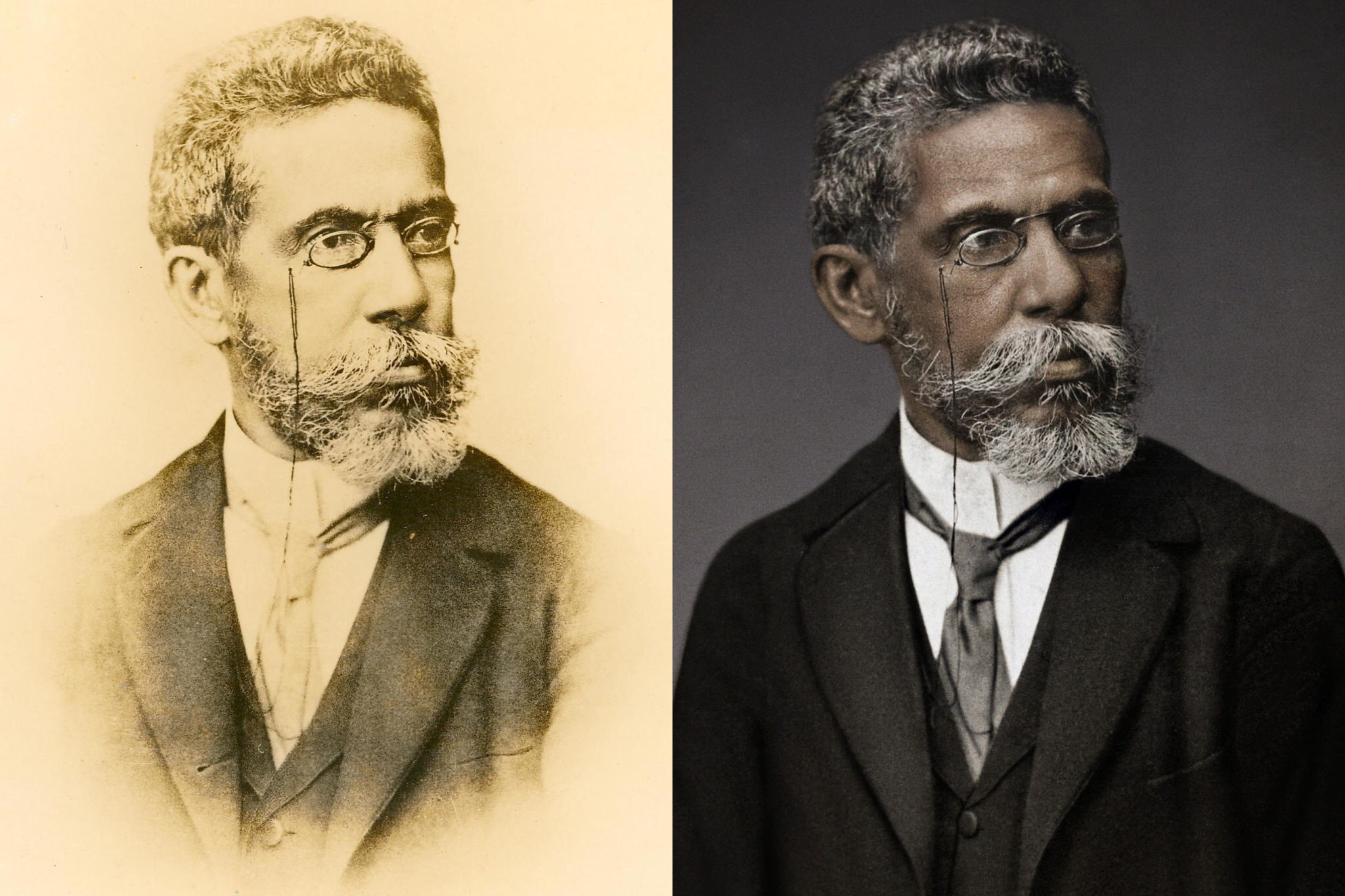 Fotografia zilei: Machedo de Assis, imaginea clasică (în stânga) și imaginea considerată reală (în dreapta). Sursă: New York Times.