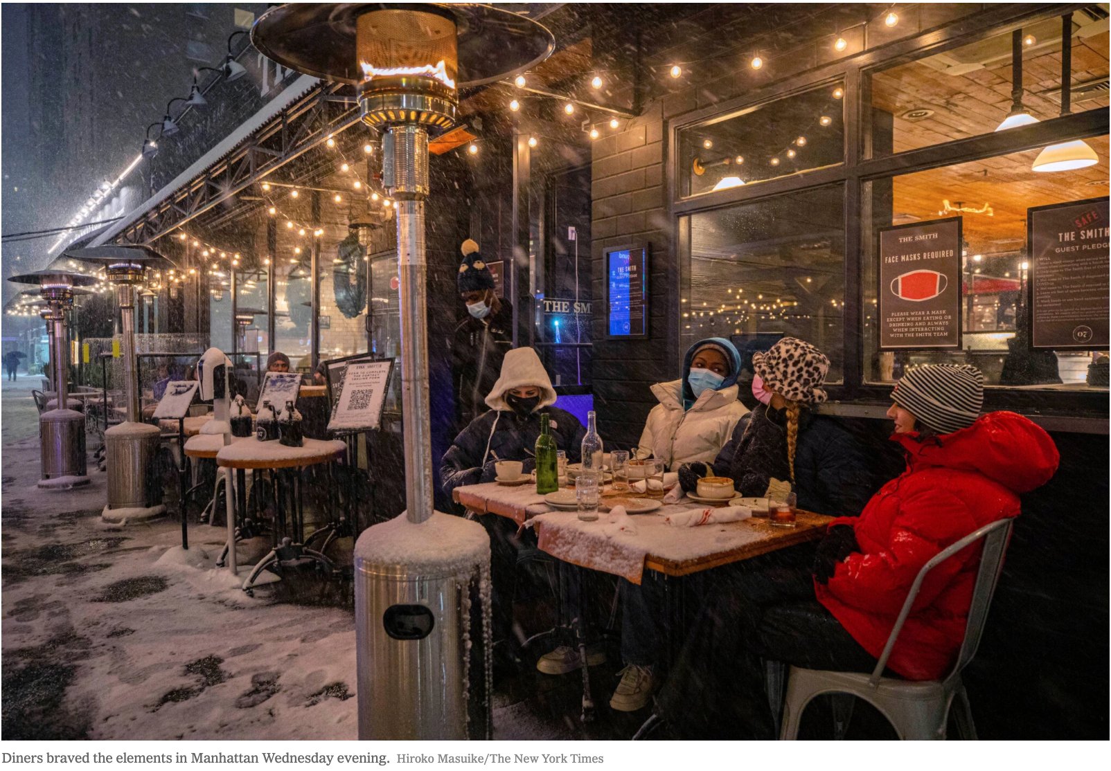 Fotografia dimineții – Prima zapadă căzută în New York City nu i-a alungat pe newyorkezi de la terasele restaurantelor:
