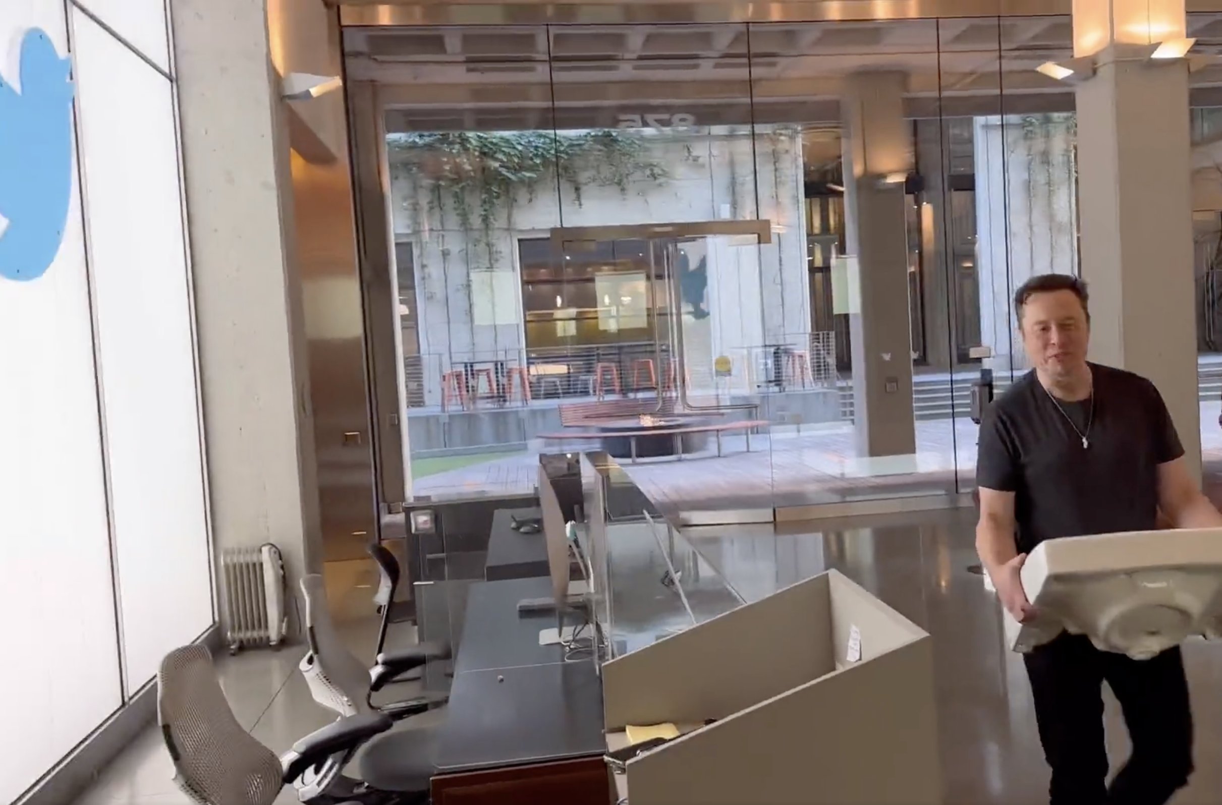 Fotografia dimineții – Elon Musk a mers miercuri la sediul Twitter cu o chiuvetă: