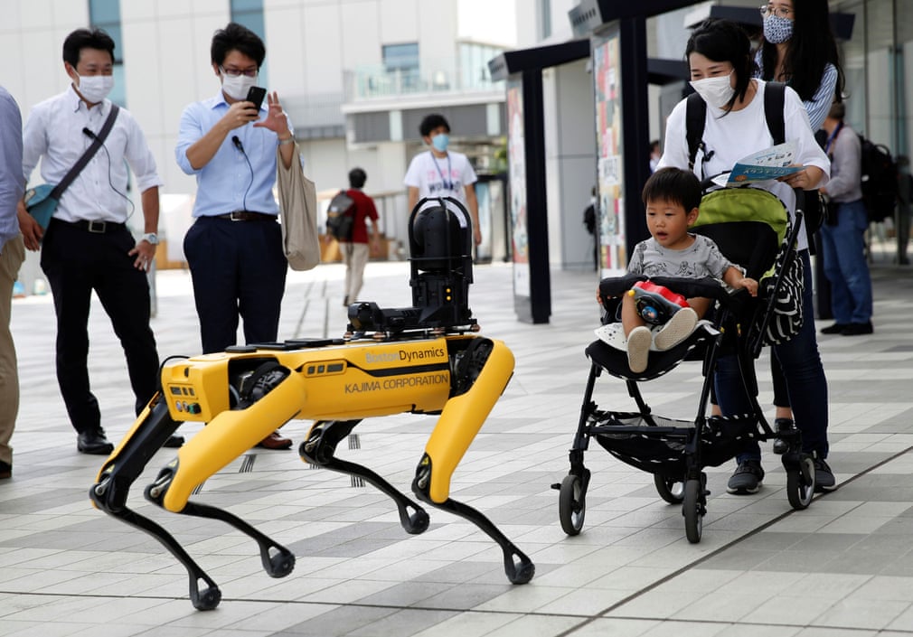 Fotografia serii – Un băiat se întâlnește robot Spot de la Boston Dynamics in Tokyo. Kim Kyung-Hoon/Reuters: