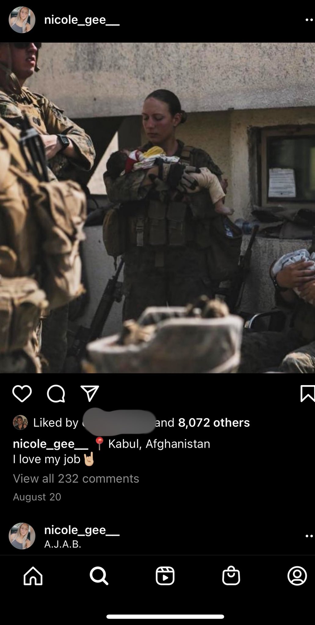 Fotografia dimineții – Nicole Gee a postat pe Instagram o fotografie în care ține un bebeluș afgan în brațe, cu câteva zile înainte de a fi ucisă în atentatul de la aeroportul din Kabul: