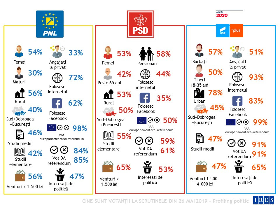 Fotografia serii – Un grafic cu demograficele celor care au votat PNL, PSD și USR-PLUS la alegerile de duminică: