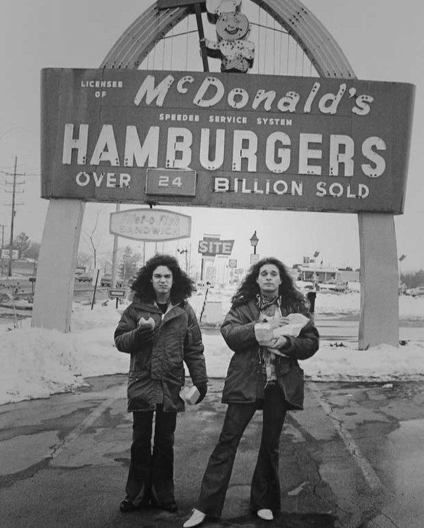 Fotografia dimineții – Eddie Van Halen și David Lee Roth în fața unui restaurant McDonalds, în 1978: