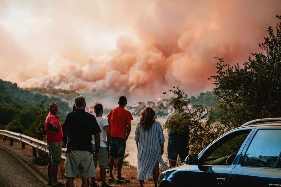 Poza editiei: in Šibenik, Croatia. Incendii semnificative au loc în anumite regiuni ale Croației, alimentate de vânturile puternice din nord, distrugând case, animale sălbatice, tot ce se află in cale. Toți cei care au peste 18 ani sunt chemați să ajute pompierii. (Severe Weather Europe)