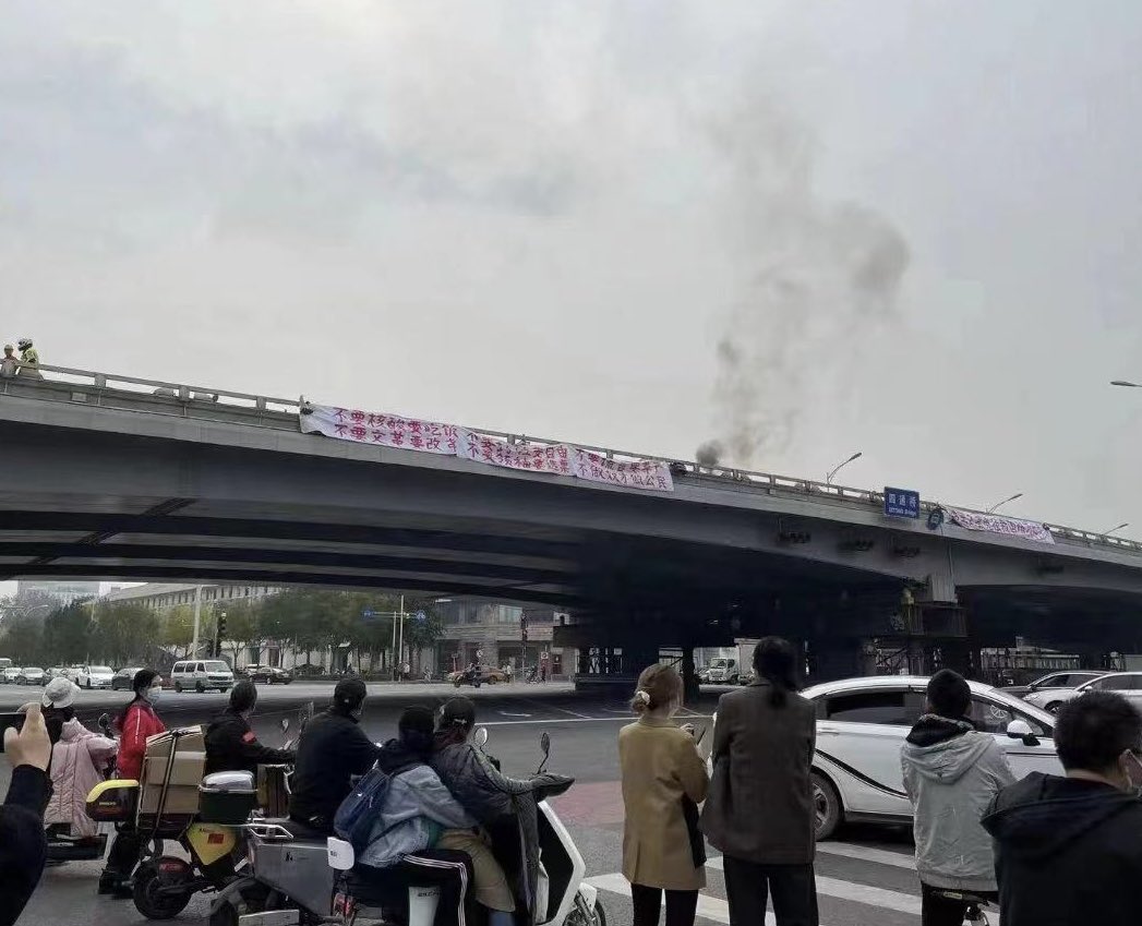 Fotografia dimineții – Un gest rar de dizidență în China unde pe un banner afișat pe un pod scria “Vrem mâncare, nu teste PCR. Vrem libertate, nu lockdown-uri și control. Vrem respect, nu minciuni.”