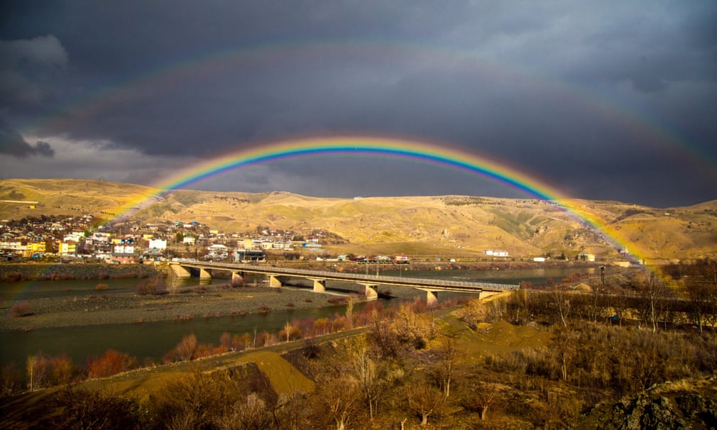 Fotografia dimineții – Un curcubeu surprins deasupra orașului Elâzığ, din Turcia. Anadolu Agency/Getty Images: