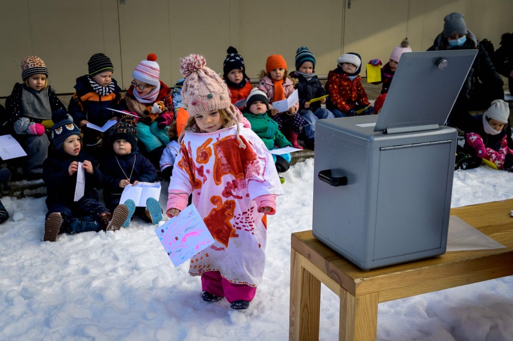 Fotografia serii – Preșcolarii din Lausanne, Elveția, învață cum să voteze, în timpul unui curs în care sunt învățați cum funcționează sistemul democratic. Fabrice Coffrini/AFP/Getty Images: